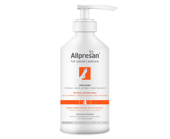 Купити Ліпідна мазь для мозолистої та потрісканої шкіри стоп AllPresan Foot Special No. 4 Lipid Ointment, 500 мл, ви зможете у нашому інтернет-магазині limonad з доставкою по всій Україні в тому числі і Київ, Дніпро, Одеса, Харків, Запоріжжя, Одеса, Львів та багато інших населених пунктів.