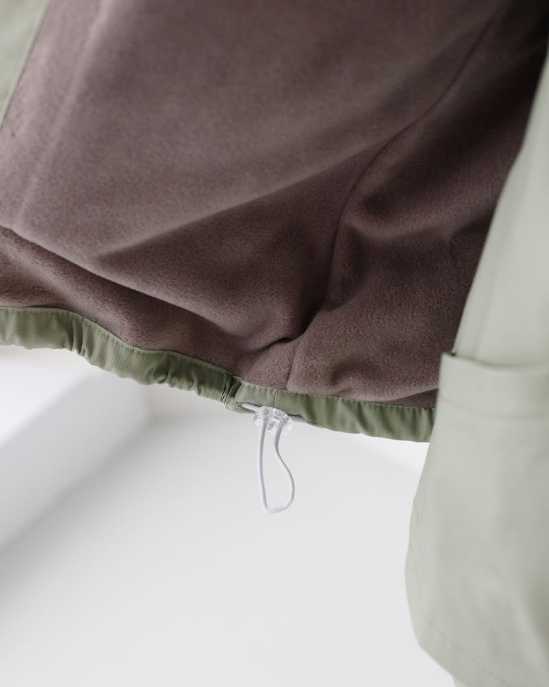 Має вільний силует, комірець із трикотажною стійкою, рукав-реглан, кишені та застібається на блискавку.