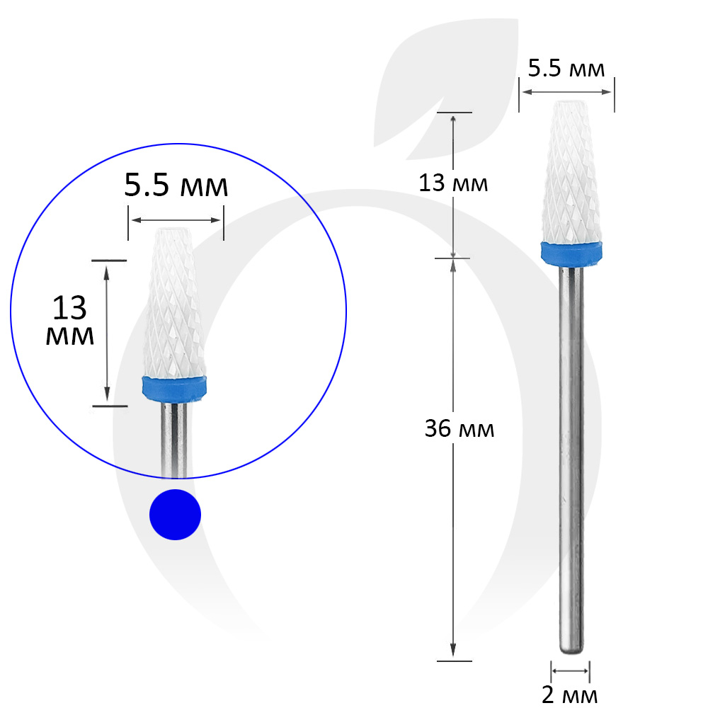 Фреза керамічна конус синя 5.5 мм, робоча частина 13 мм