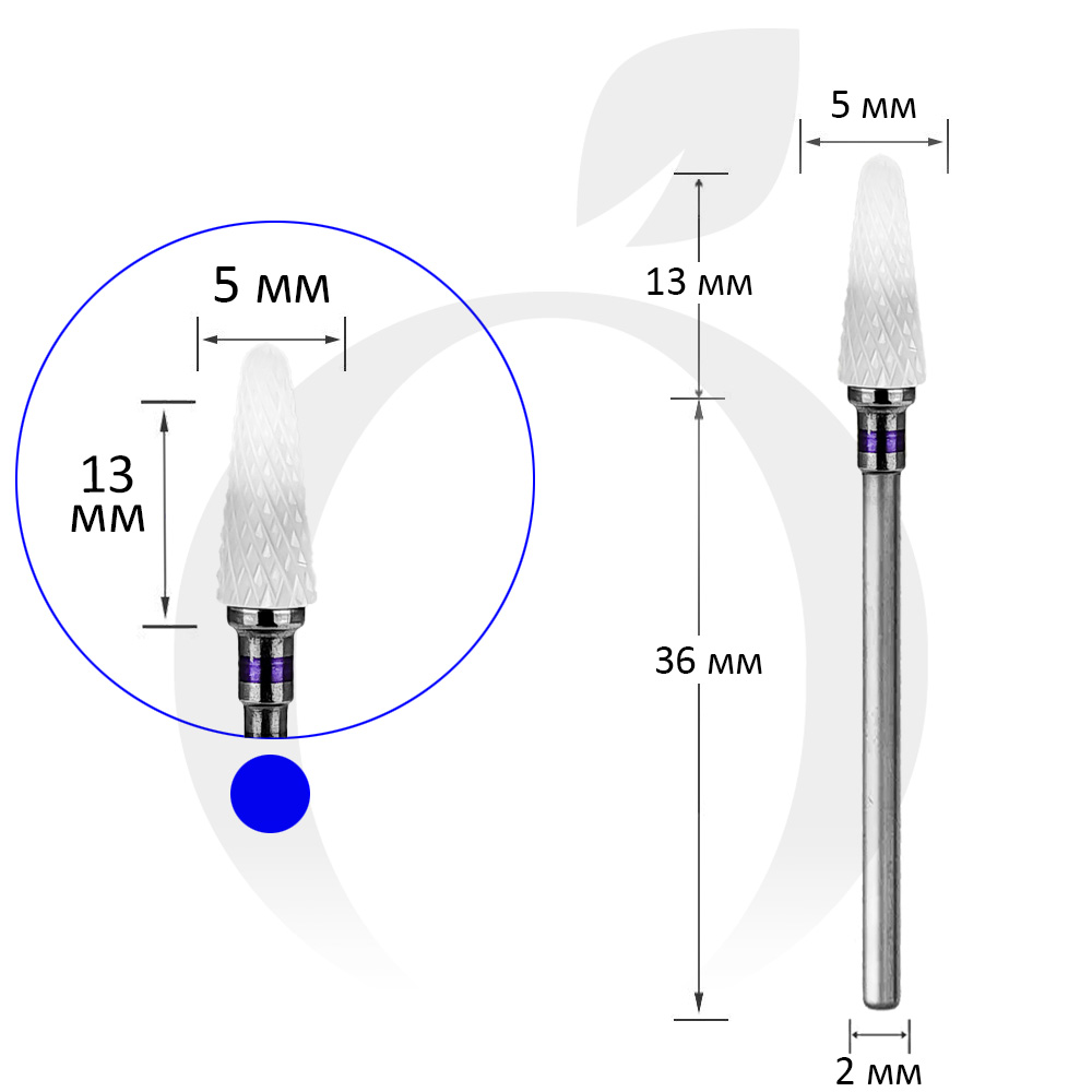 Фреза керамічна конус синя 5 мм, робоча частина 13 мм