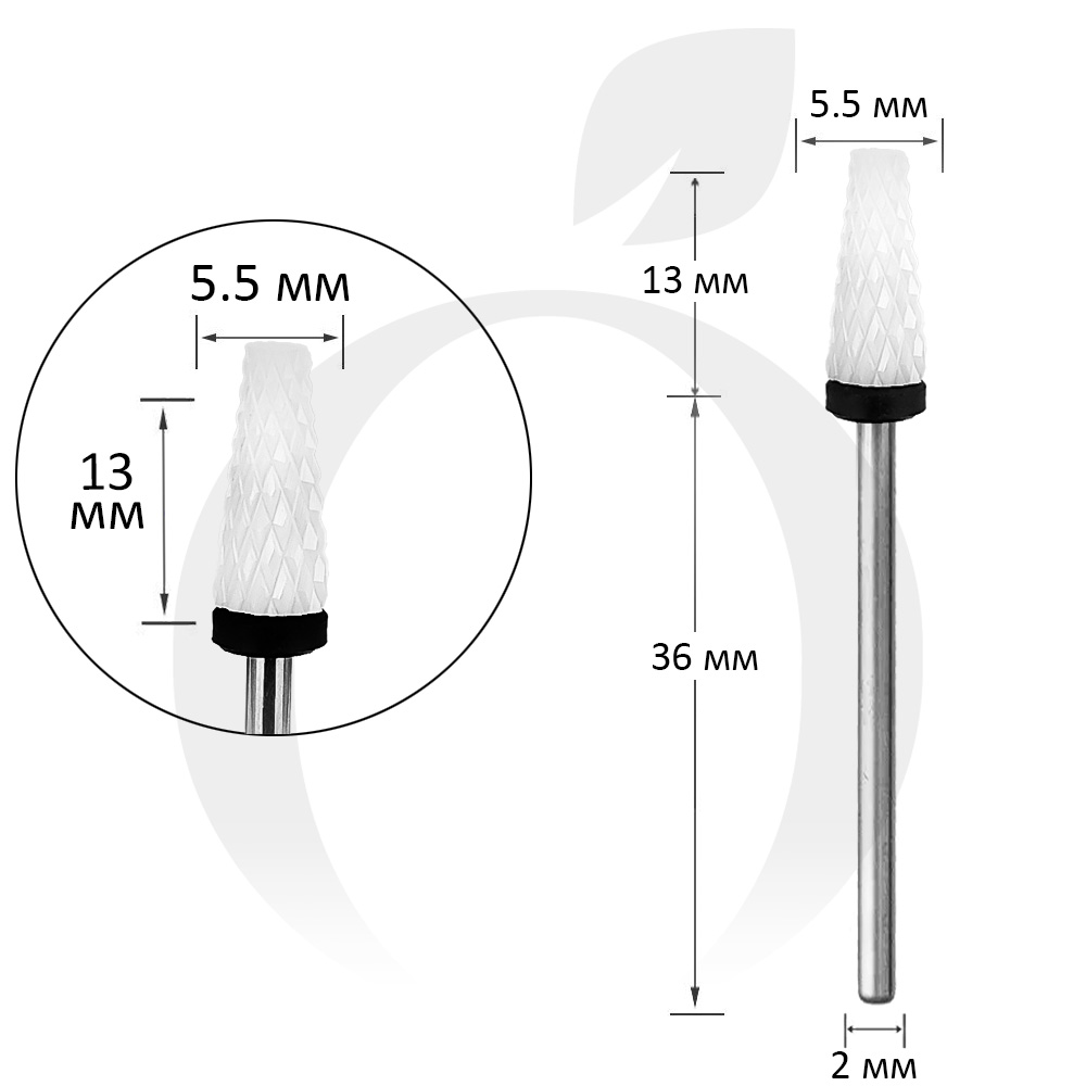 Фреза керамічна конус чорна 5.5 мм, робоча частина 13 мм