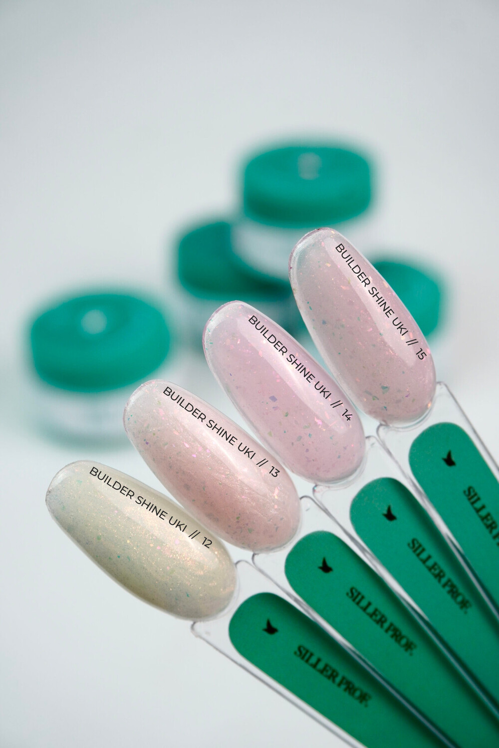 Колекція представлена номерами 12-15 з неперевершеними ефектами з пластівцями UKI. Відкрийте для себе новий рівень комфорту та краси з Siller Gel Shine UKI!