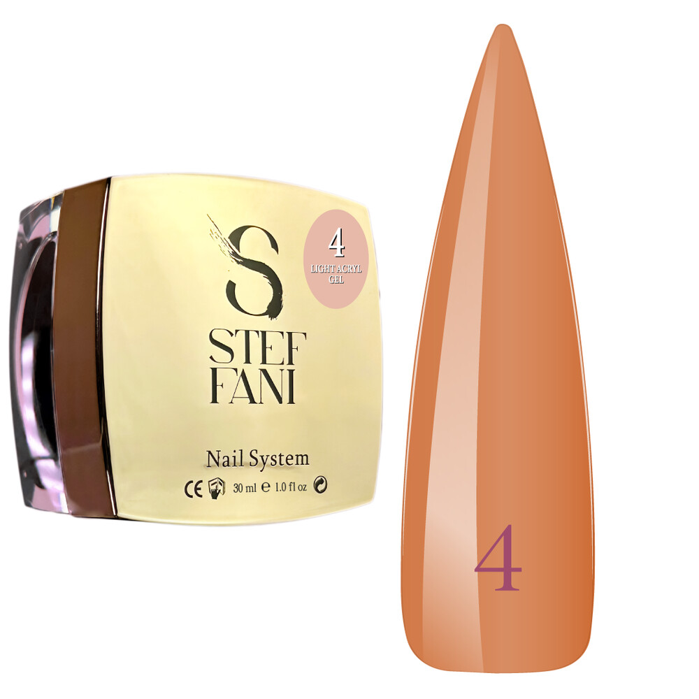 Light Acryl Gel Steffani - колекція рідких гелів, призначених для зміцнення нігтьової пластини. Завдяки низькій кислотності рідкі акрилові гелі абсолютно безпечні для нігтів.