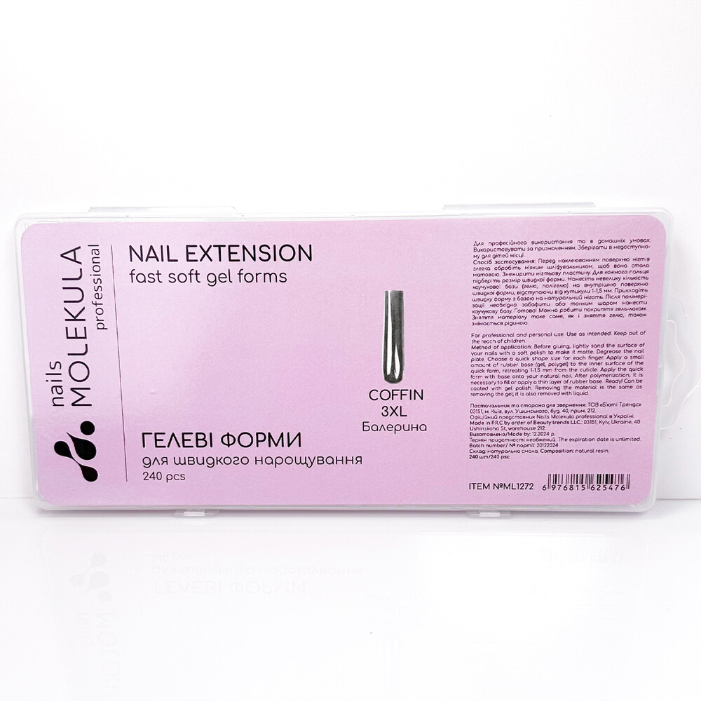 Форми-тіпси гелеві для нарощування нігтів Nails Molekula Балерина 3XL, 240 шт