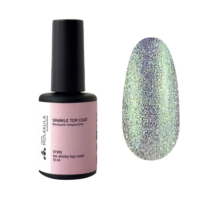 Топ без липкого шару з UV захистом Nails Molekula Sparkle Top ST252 з блискітками золотисто-зелений, 12 мл