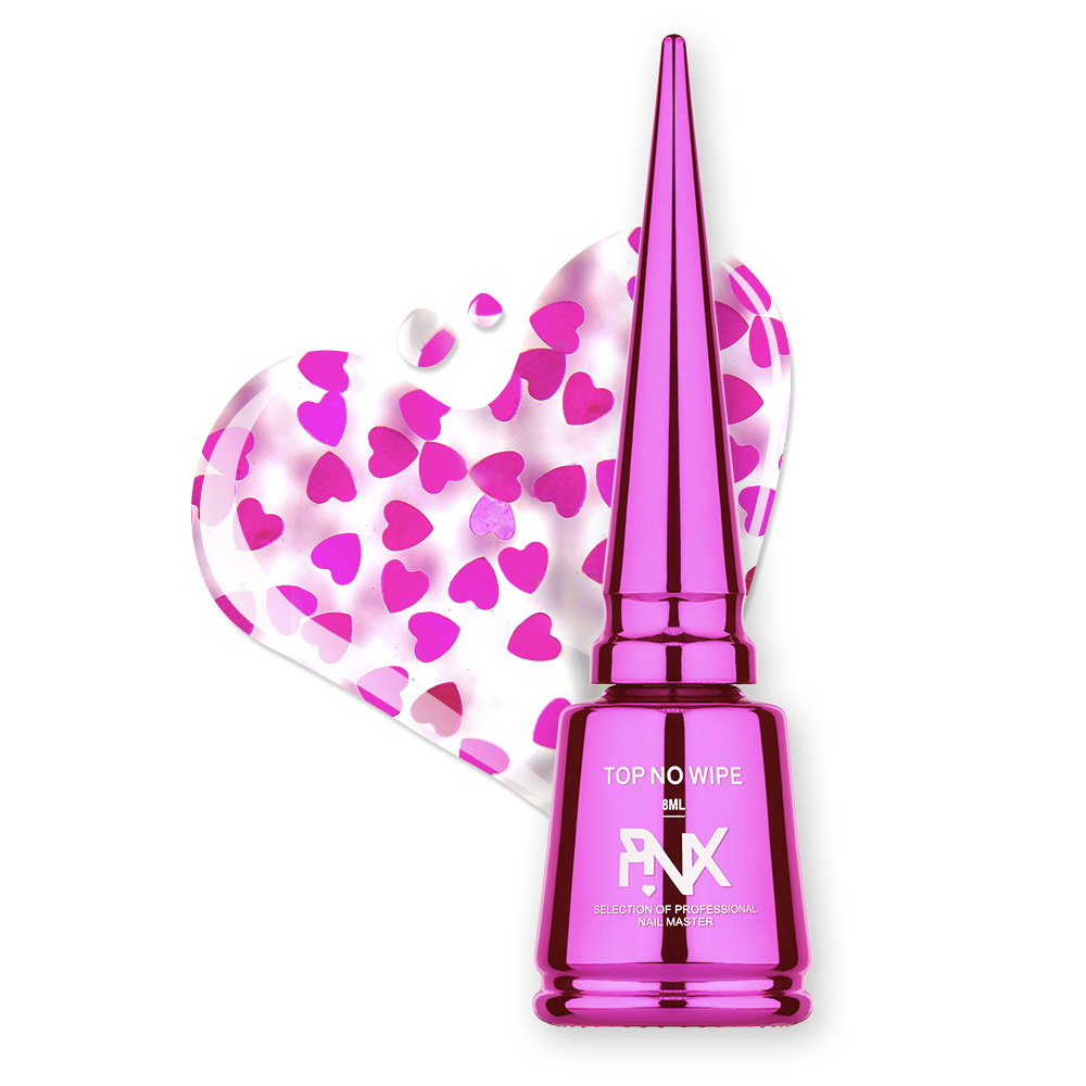 Топ глянець з сердечками без липкості є завершальним покриттям, призначений надати покриттю стильного дизайну та глянцевого блиску. Забезпечує ефектний супер глянець протягом усього періоду носіння покриття, легко самовирівнюється, комфортна консистенція дозволяє з легкістю створити «ідеальний блік», стійкий, підходить для фінішного покриття.