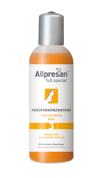 Концентрат №3 торгової марки Allpresan ідеально підходить для догляду за проблемною та чутливою шкірою. Склад, збагачений АНА-кислотами, екстрактом алое віра та сечовиною, чудово впорається з підвищеною сухістю шкірного покриву. Має заспокійливі та розслаблюючі властивості, делікатно очищає епідерміс, залишаючи шкіру після процедури глибоко зволоженою, гладкою та еластичною. Запобігає грибковим захворюванням. Свіжий аромат персика дарує відчуття розслабленості, знімаючи стрес та втому після важкого дня. Концентрат №3 для ванни Allpresan протестовано дерматологами. Не містить консервантів. Рекомендується для оздоровлення дуже сухої шкіри та діабетичної стопи.