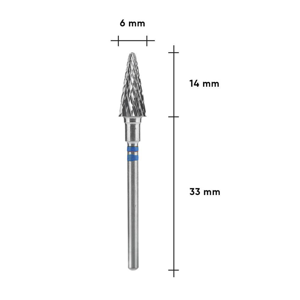 Фреза твердосплавна для шульги Staleks Pro EXPERT конус синя, діаметр 6 мм / робоча частина 14 мм (FT73B060/14)