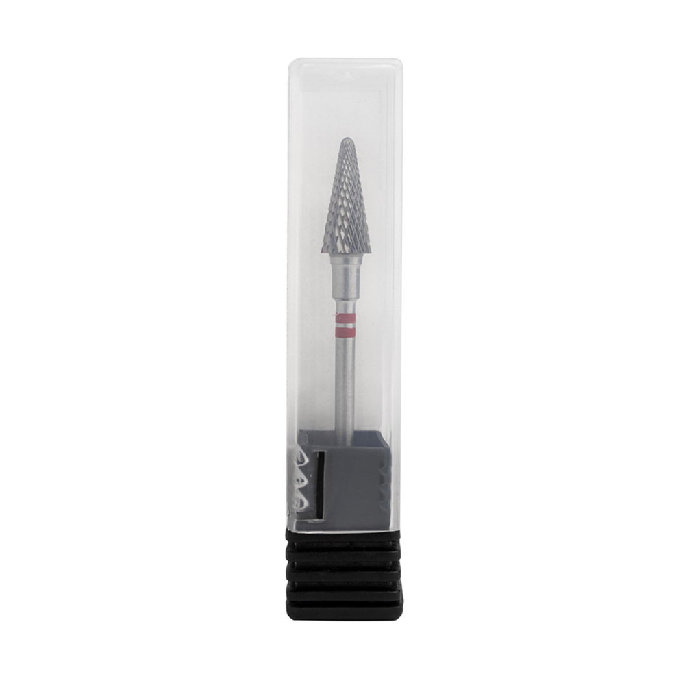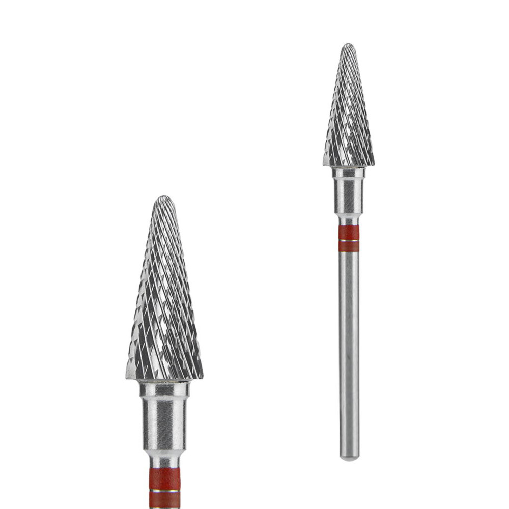 Твердосплавна фреза для зняття гель лаку для лівші форми «конус» при манікюрі підходить для корекції тонкого штучного матеріалу, видалення напливів, обробки відшарування в бічних валиках.