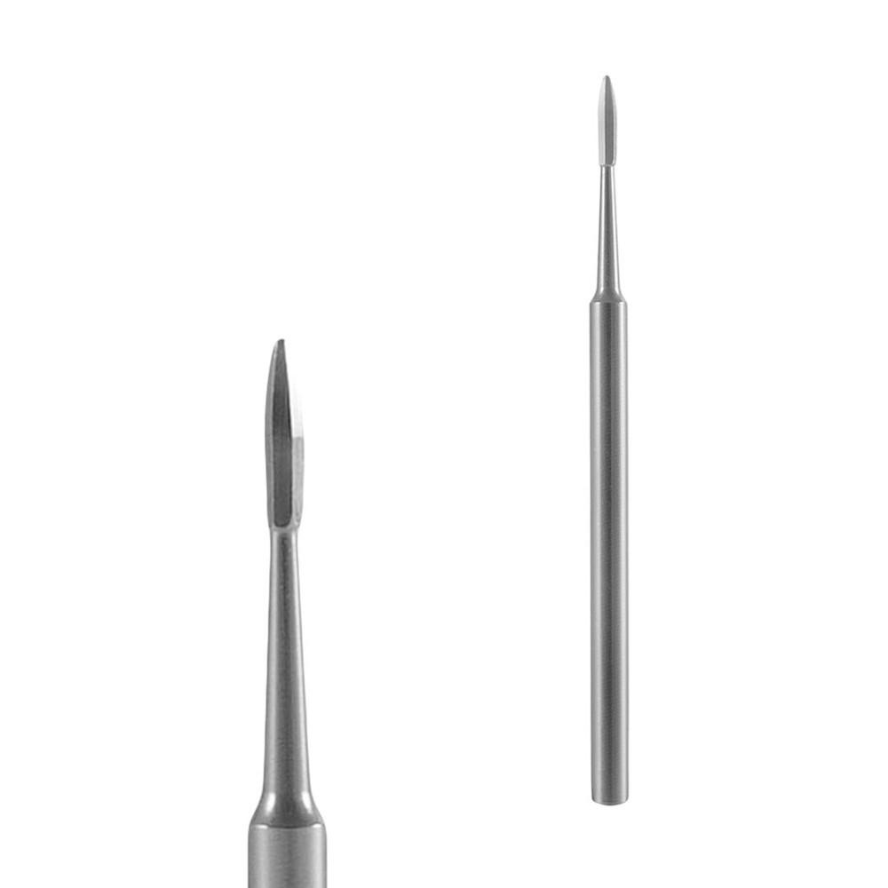 Безпечна фреза Staleks Pro nail cleaner EXPERT 1,2х2,5 мм має 6 граней, які з'єднуються під м'яким кутом на кінці робочої частини. Завдяки формі "nail cleaner" застосовується як фреза для видалення птеригію, очищення синусів, делікатної обробки кутикули та огрубілих ділянок шкіри. Підходить для роботи на натуральній нігтьовій пластині, в манікюрі це підняття кутикули та розкриття синусів. Оптимальний варіант для роботи початківців та досвідчених нейл-майстрів.