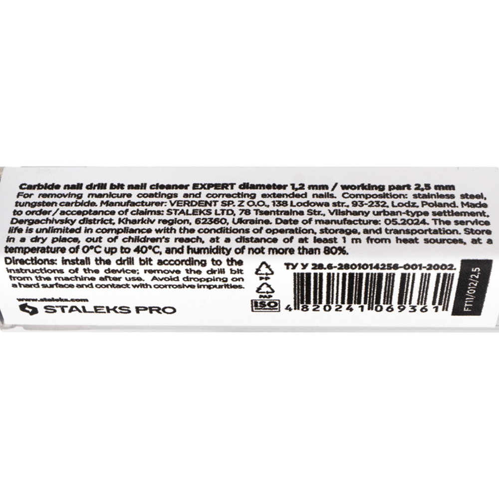Фреза твердосплавна Staleks Pro EXPERT nail cleaner, діаметр 1.2 мм / робоча частина 2.5 мм (FT11/012/2.5)