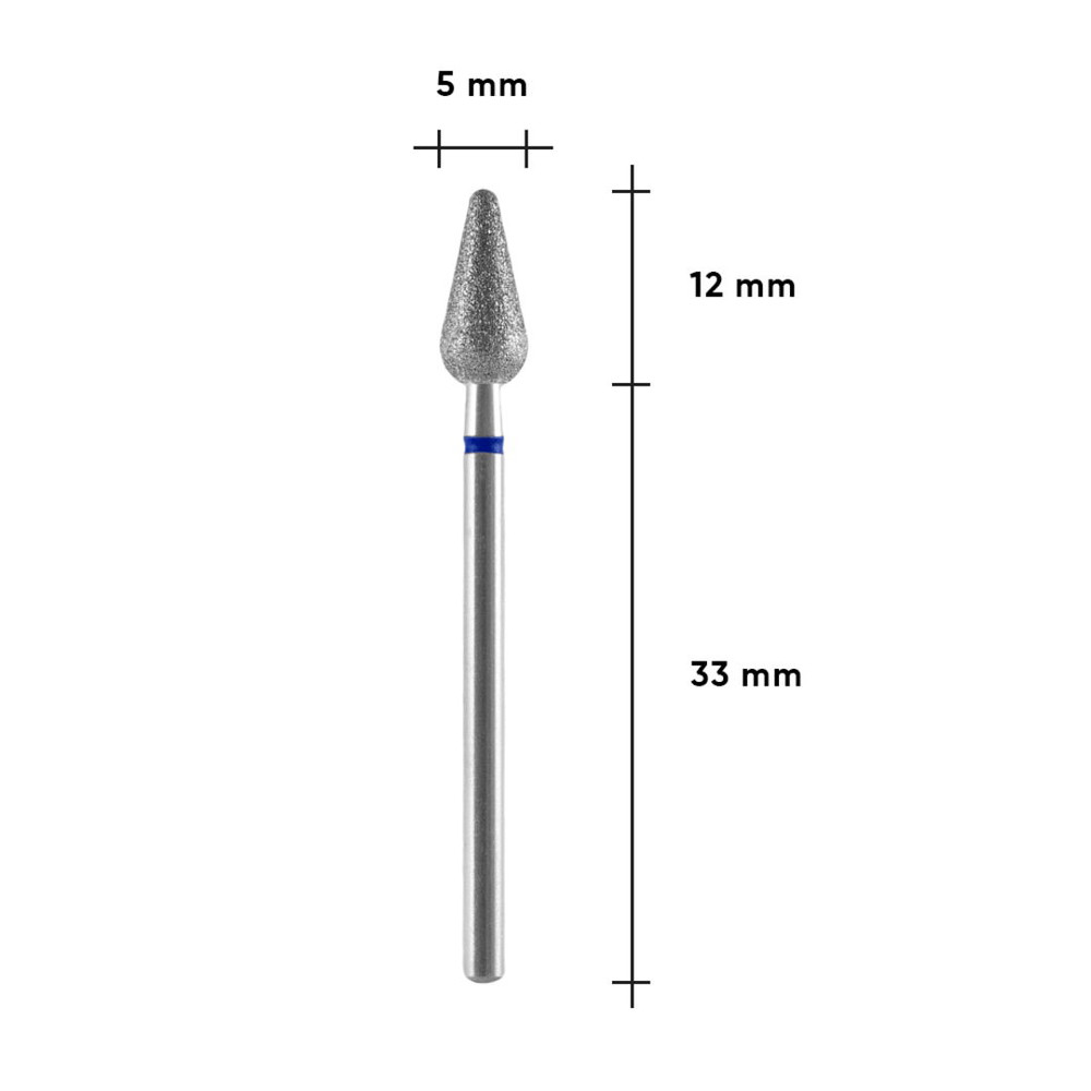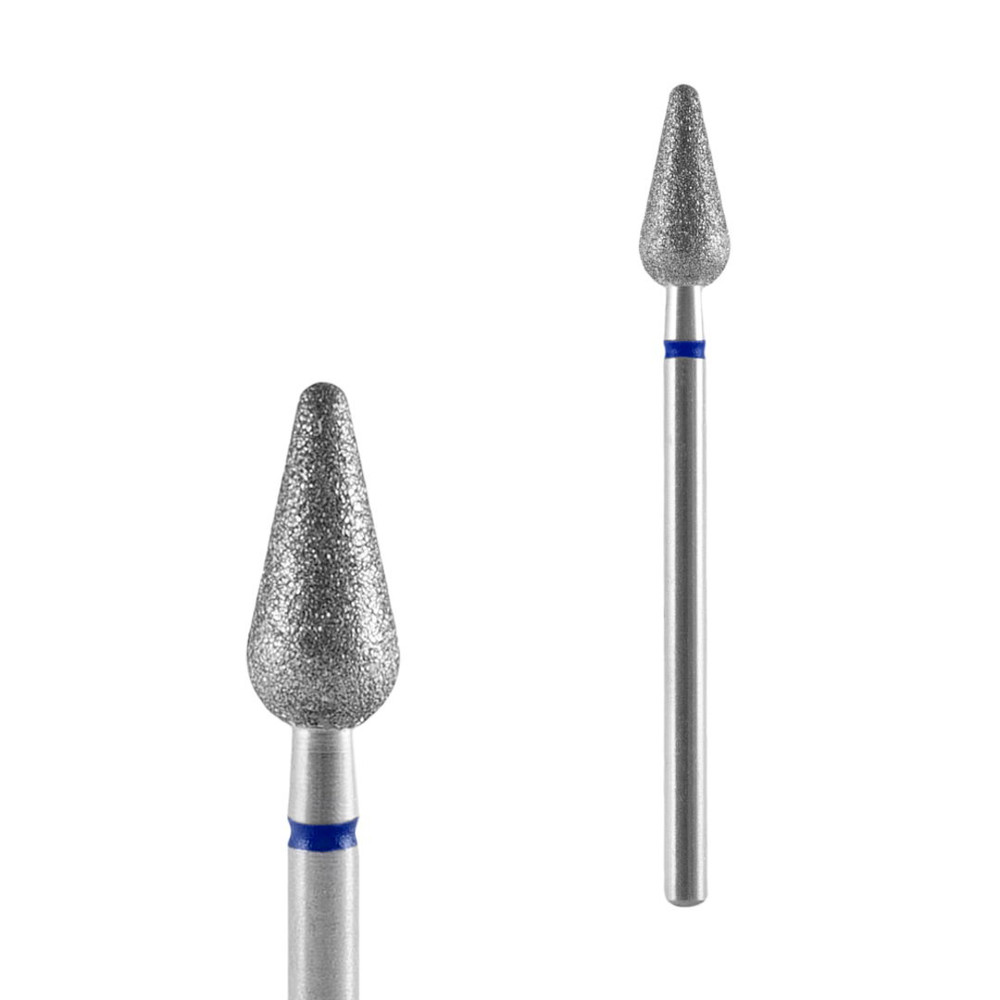 STALEKS Алмазна фреза груша закруглена Blue 5 мм призначена для використання в апаратному манікюрі та педикюрі початківцями й профі-майстрами. Позначена синьою насічкою, вона створена для делікатної обробки шкіри. Допомагає у догляді за кутикулою, бічними валиками та очищенні нігтьової пластини від епідермісу, універсальна та багатофункціональна.