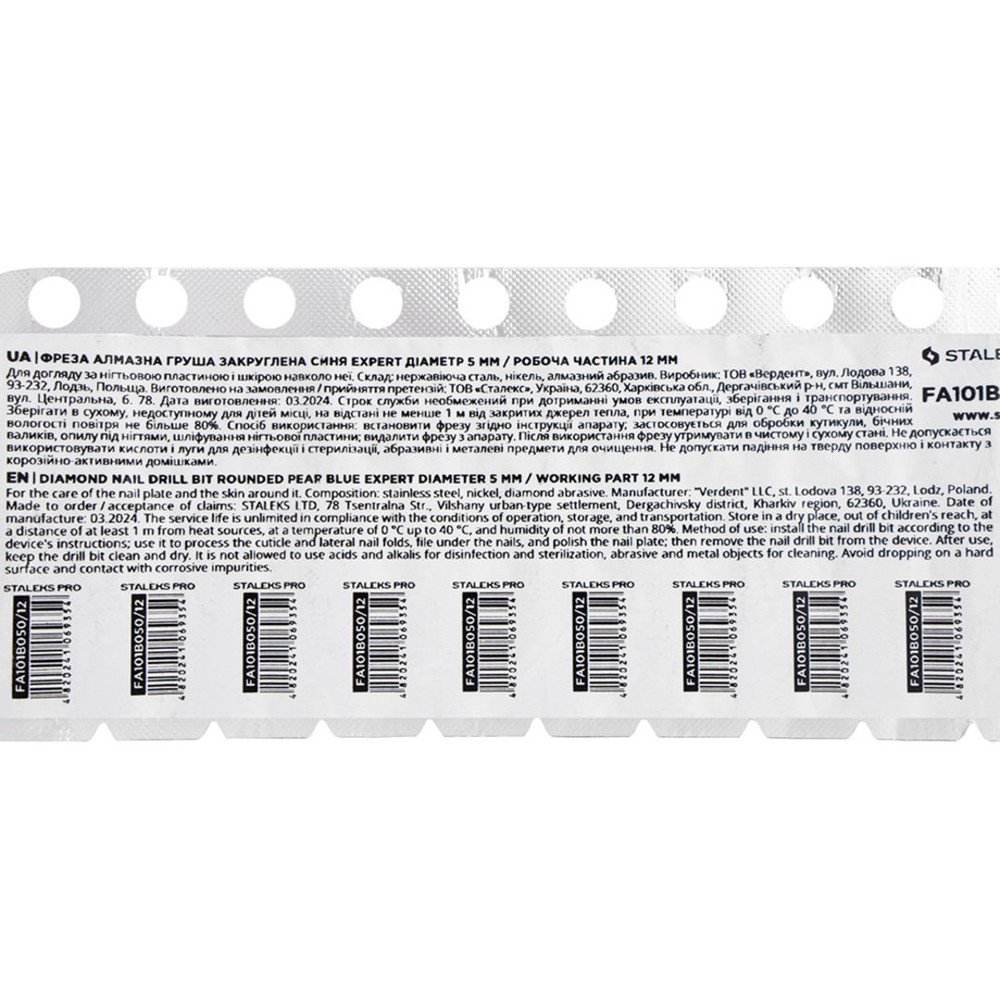- фреза груша для манікюру FA101B050/12 STALEKS;