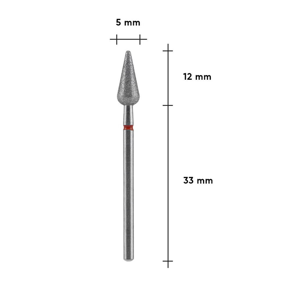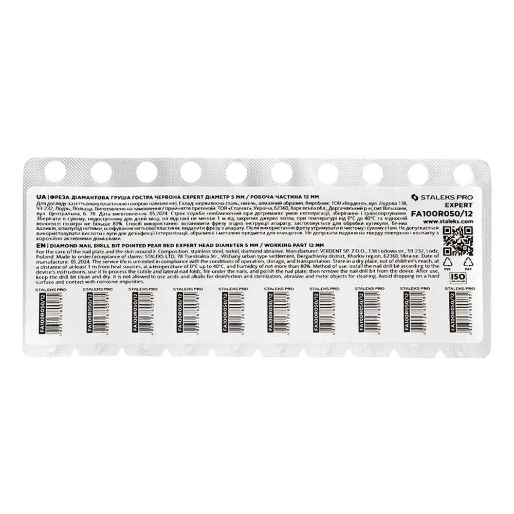 Фреза алмазна Staleks Pro EXPERT груша гостра червона, діаметр 5 мм / робоча частина 12 мм (FA100R050/12)