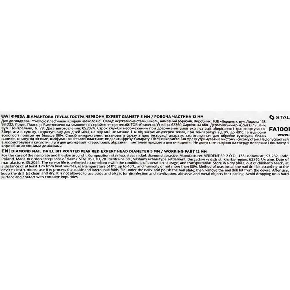 Алмазна фреза Staleks Pro груша гостра червона EXPERT 5 мм робоча частина 12 мм — особливості: