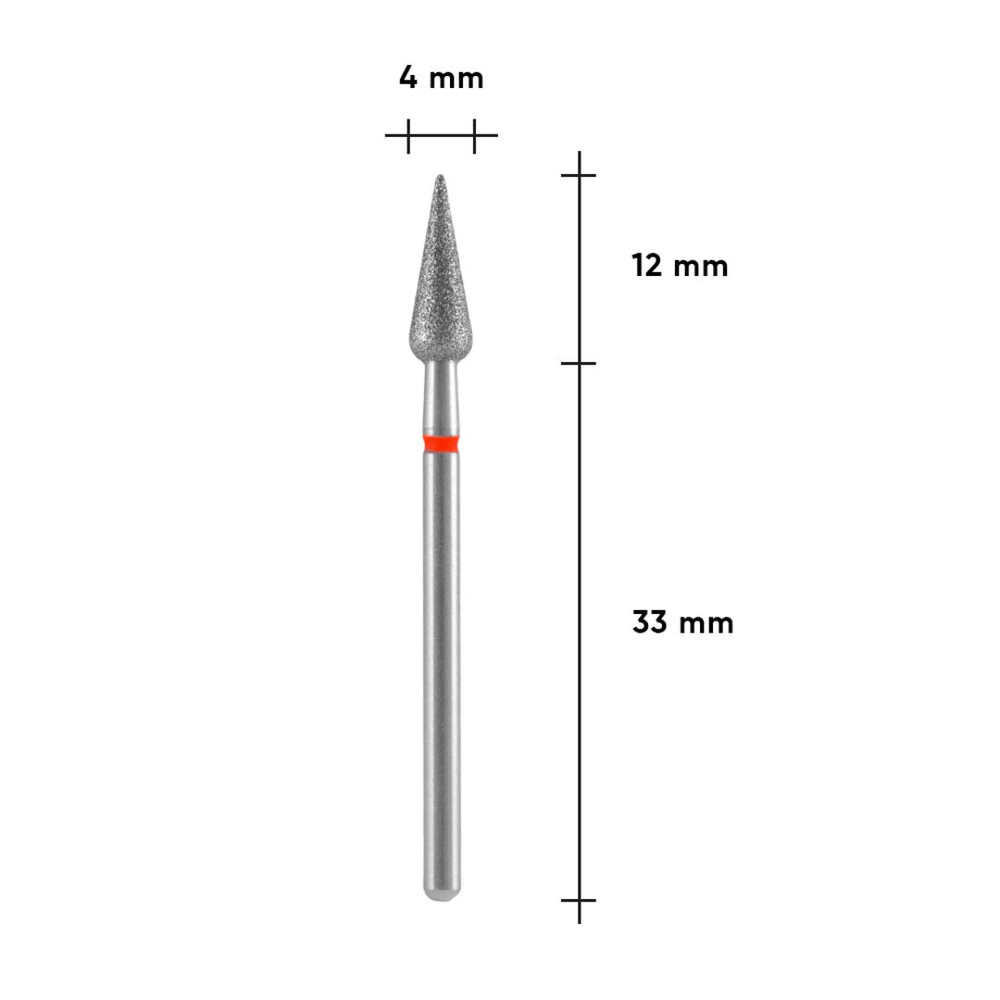 Фреза алмазна Staleks Pro EXPERT груша гостра червона, діаметр 4 мм / робоча частина 12 мм (FA100R040/12)