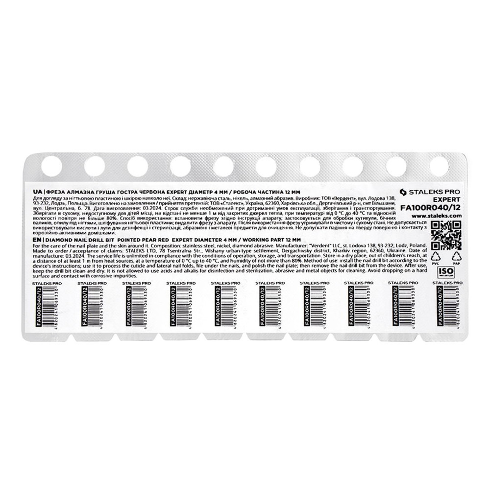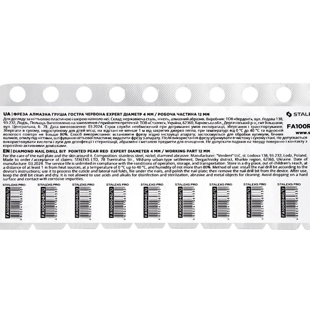 Купити Фреза алмазна Staleks Pro EXPERT груша гостра червона, діаметр 4 мм / робоча частина 12 мм (FA100R040/12), ви зможете у нашому інтернет-магазині limonad з доставкою по всій Україні в тому числі і Київ, Дніпро, Одеса, Харків, Запоріжжя, Одеса, Львів та багато інших населених пунктів.