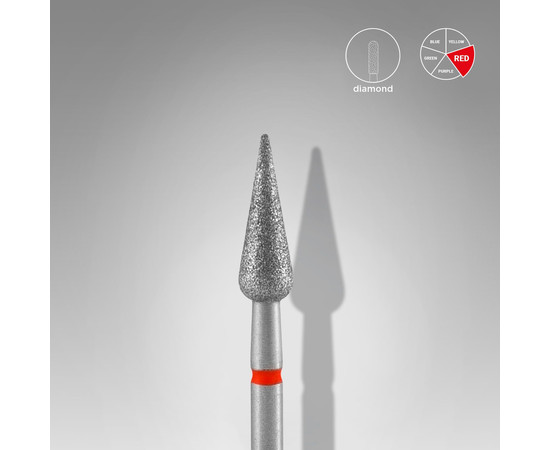Staleks Pro алмазна насадка груша гостра насічка червона Red м'якої абразивності для апаратного манікюру та педикюру EXPERT 4 мм — застосування: