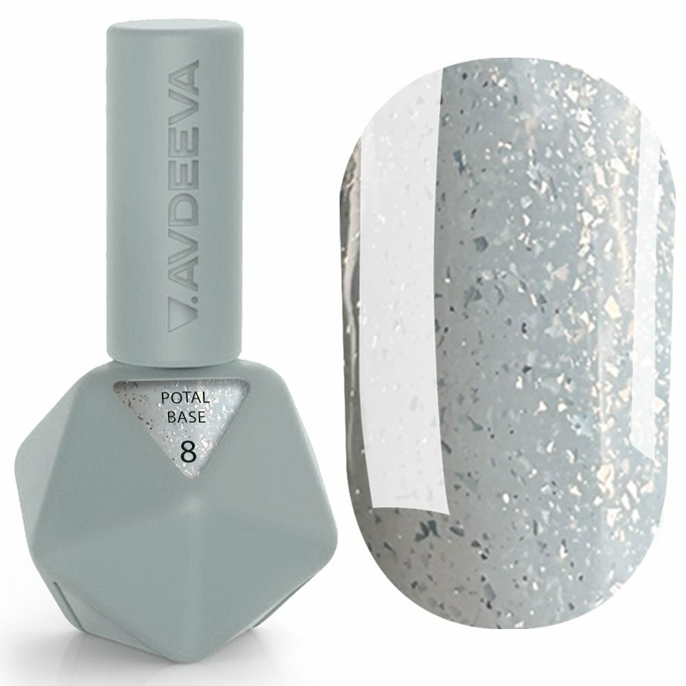 Камуфлююча база для нігтів Victoria Avdeeva POTAL BASE 8 – сірий з срібною поталлю