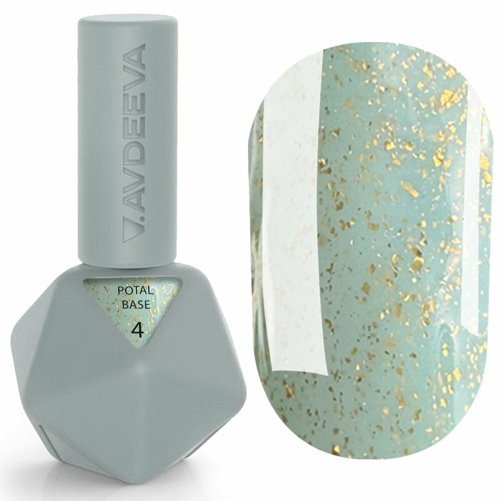 Камуфлююча база для нігтів Victoria Avdeeva POTAL BASE 4 – ніжний бірюзовий із золотою поталлю