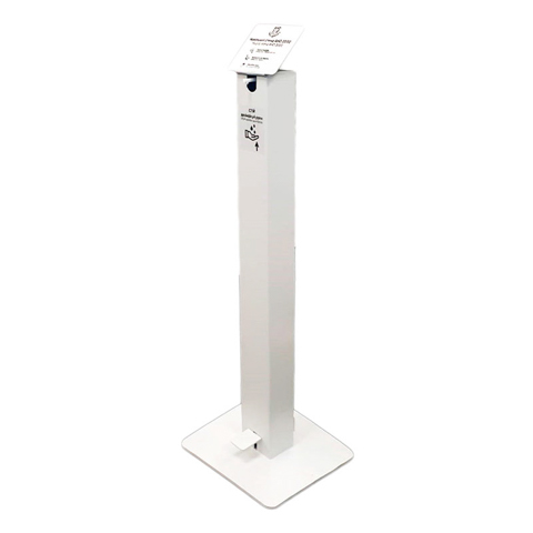 Безконтактна станція з яскравою позначкою про необхідність гігієни рук та антисептиком з вмістом спирту не менше 60%.