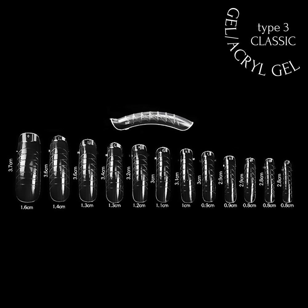 Багаторазовi верхні форми для нарощування гелем/акрил гелем 120шт тип 3 – класичний вигинDUAL NAIL FORMS - багаторазові форми з високоякісного ABS-пластику зі зручною градацією довжини моделювання нігтя та зручним виступом для утримування й зняття тіпси. Упаковка містить детальну інструцію з використання та зручну нумерацію розміру від 0 до 11 тіпс та відповідних відділень у коробці.Класичний випуклий вигин для нарощування овальної форми нігтів.1. Підготуйте нігтьову пластину звичним способом2. Виберіть відповідний розмір форми для кожного нігтя3. Нанесіть необхідну кількість гелю / акрил-гелю на форму, рівномірно розподіліть по формі з потовщенням в потрібних зонах4. Покладіть верхню форму з матеріалом на ніготь і притисніть5. Приберіть залишки матеріалу вологим пензлем, змоченим у рідині для роботи з акрил-гелем PREP&FINISH6. Сформуйте вільний край і просушіть в UV/ LED лампі 60/ 90cекунд7. Зніміть верхню форму8. Опиліть вільний край до бажаної форми9. За бажанням нанесіть кольорове покриття, закріпіть манікюр топом для твердих покриттів LOCK IN TOP