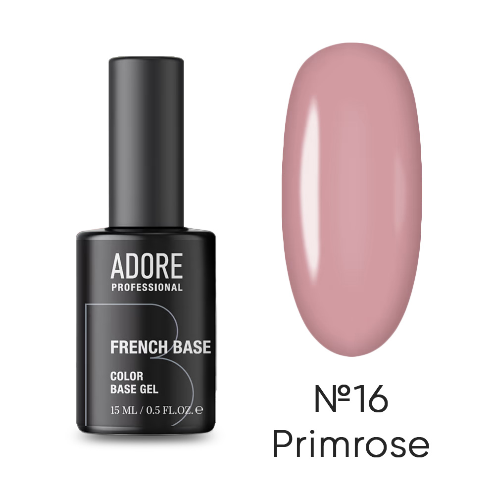 Adore Professional Камуфлююча база French Base primrose належить до групи нейтральних тонів і поєднується з нейтральним підтоном шкіри, коли судини на зап’ясті виглядають синьо-зеленими. Пильно-нюдовий колір візуально вирівнює тон нігтьової пластини, роблячи руки акуратними та доглянутими. Тонувальний матеріал входить до колекції, в якій зібрано 25 нюдових відтінків для створення френча або манікюру з ефектом “clean look”.