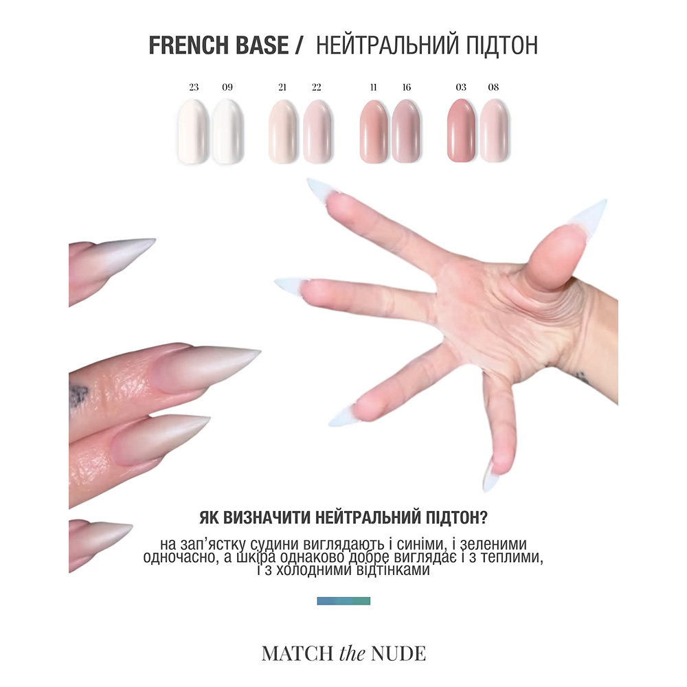 - Чи підходить база для довгих нігтів? Дана серія призначена для коротких і середніх форм. При роботі з великою довжиною або чітким квадратом потрібне попереднє укріплення пластини жорстким гелем, оскільки матеріал залишається еластичним після сушіння.