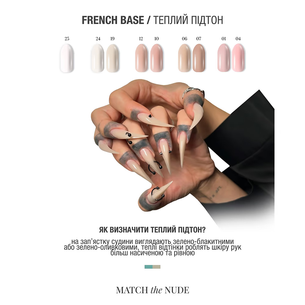 Нейл-майстрам варто купити камуфляжну базу для нігтів Adore French Base vanilla разом із Multi Slim Base, щоб подовжити термін носіння нюдового покриття.