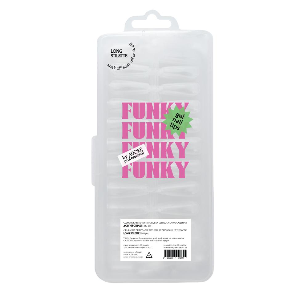 Гелеві типси для нарощування ADORE prof. Funky Gel Nail Tips 240шт - long stilette