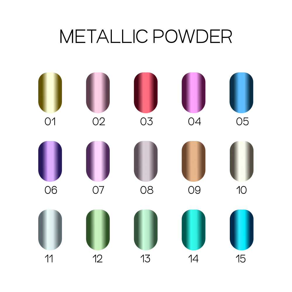 Металева пудра для створення ідеально дзеркальних нігтів. М'яка, легка текстура створює щільну поверхню, що відбиває. Найбільш ефектно втирання виглядає на темних відтінках. Підходить для втирання в "гарячий" та холодний топ.