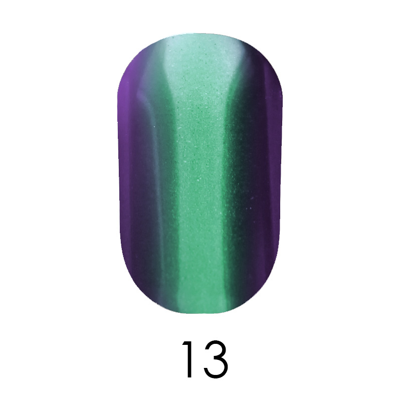Дзеркальна пудра для декору створює цікавий хамелеон-перелив на нігтях. За рахунок своєї дрібної текстури пудра створює щільну дзеркальну поверхню, завдяки кольору підкладки можна змінювати остаточний колір дизайну. Підходить для втирання в "гарячий" та холодний топ.