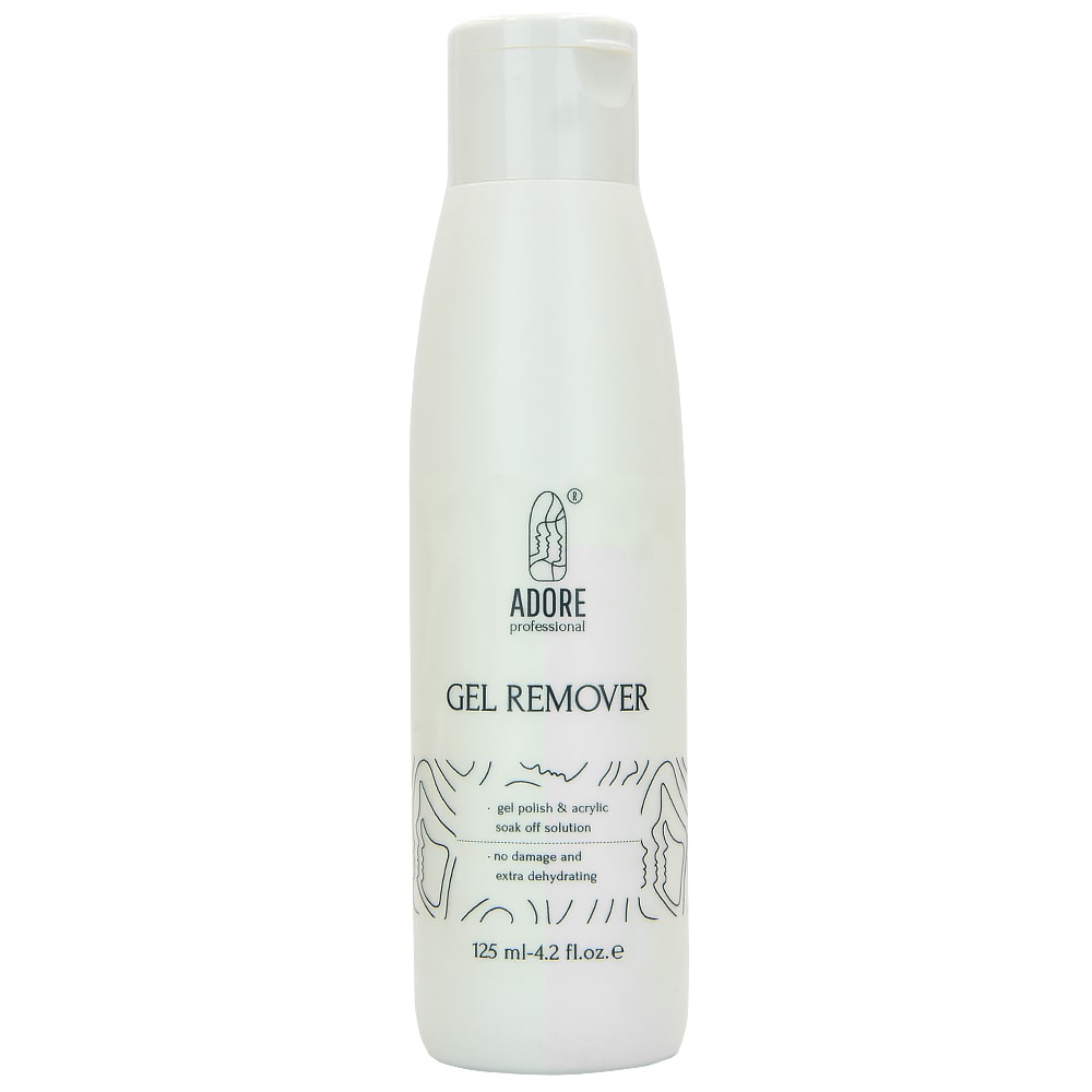Adore Professional Gel Remover - рідина для зняття гель-лаку та розмочування акрилу, що має делікатну формулу. Полегшує та оптимізує процес видалення декоративних покриттів з нігтів, не завдає шкоди структурі. Працює швидко та ефективно. Є чудовим вибором для професійних та домашніх нейл-процедур.