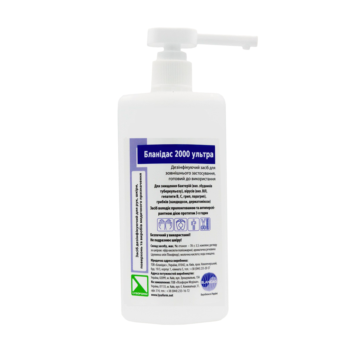 Купити Бланідас 2000 ультра 500 мл - дезінфекція рук та поверхонь, Blanidas, ви зможете у нашому інтернет-магазині limonad з доставкою по всій Україні в тому числі і Київ, Дніпро, Одеса, Харків, Запоріжжя, Одеса, Львів та багато інших населених пунктів.