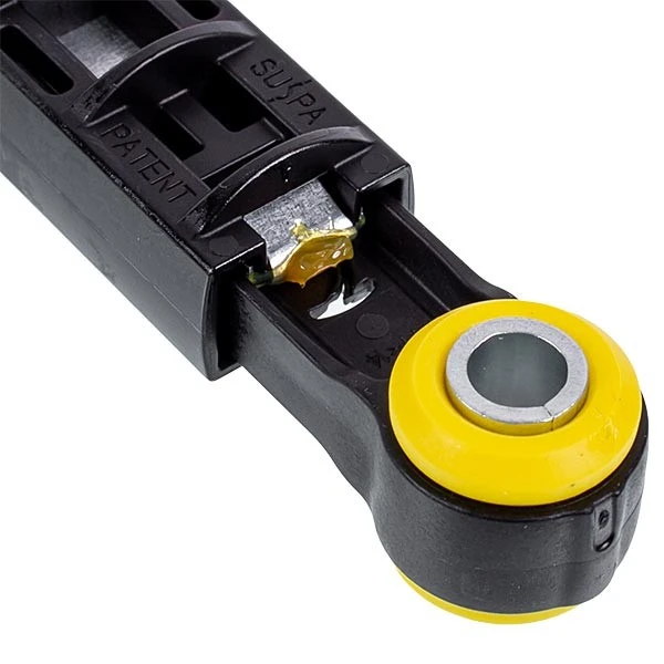 Амортизатор бака для пральної машини призначений для гасіння вібрацій і пом'якшення ударів, що виникають під час обертання барабана, особливо при віджиманні. Цей елемент з'єднує бак з корпусом машини й працює як демпфер, зменшуючи розгойдування та запобігаючи ударам бака об стінки пристрою. Завдяки йому пральна машина працює тихіше, стійкіше й довше зберігає працездатність. Крім того, амортизатори захищають внутрішні компоненти від перевантажень і передчасного зносу.