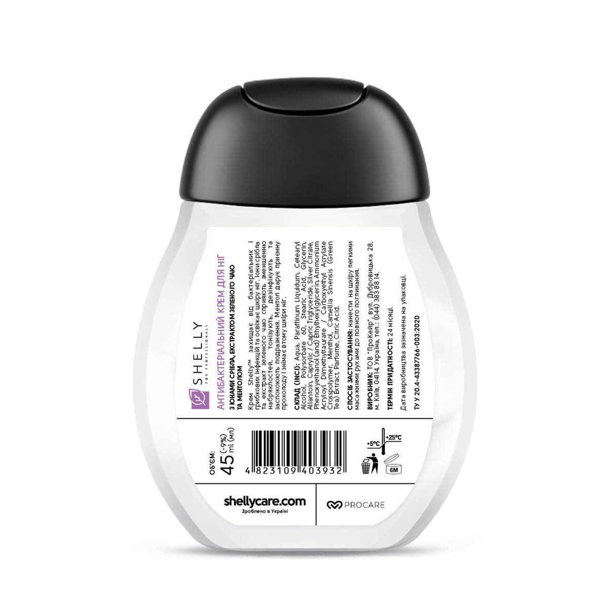 Антибактеріальний крем для ніг Shelly 45 мл з іонами срібла, екстрактом зеленого чаю і ментолом