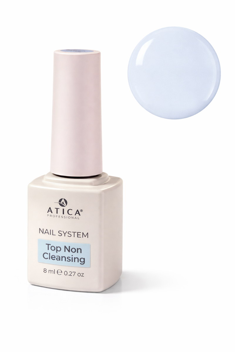 Clear Top ATICA 8 мл (no-wipe) — прозорий фініш без липкого шару, який закриває покриття щільним глянцем і захищає дизайн від щоденних навантажень. Це універсальний топ для салонної роботи: швидко дає “чистий” блиск, підкреслює колір і робить манікюр візуально охайнішим.
