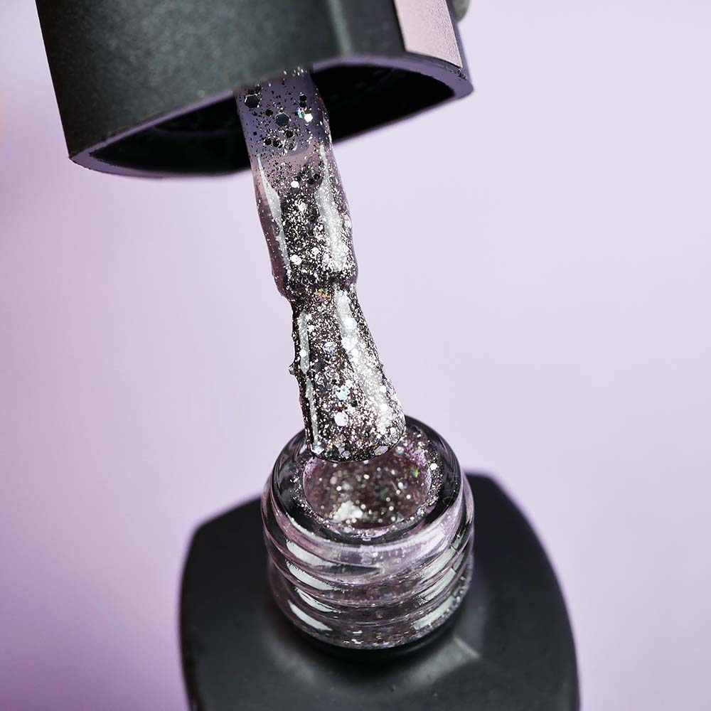 Гель лак BABY Moon Dance Diamond №016 сріблясто-бежевий з різнобарвним глітером, 6 мл