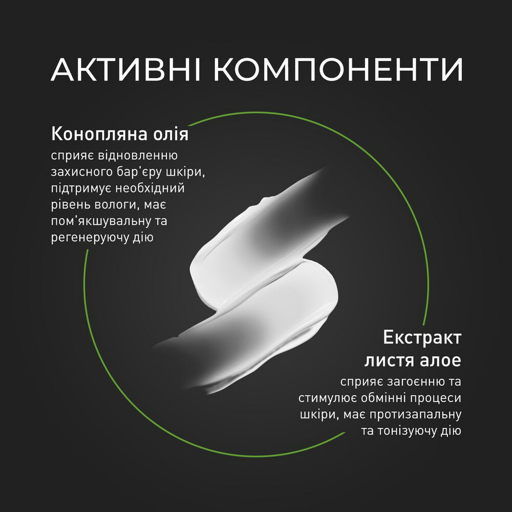 Бальзам після гоління з конопляною олією Cannabis сприяє зволоженню та заспокоєнню шкіри обличчя після гоління. Конопляна олія у складі засобу сприяє відновленню захисного бар'єру шкіри, підтримує необхідний рівень вологи, має пом'якшувальну та регенеруючу дію. Сік алое вера пришвидшує загоєння та стимулює обмінні процеси шкіри, має протизапальну та тонізуючу дію. Бальзам захищає шкіру та дарує відчуття свіжості та комфорту протягом усього дня. Засіб забезпечує ефективний щоденний догляд після гоління, робить шкіру більш пружною, підтягнутою та підтримує оптимальний рівень зволоженості.