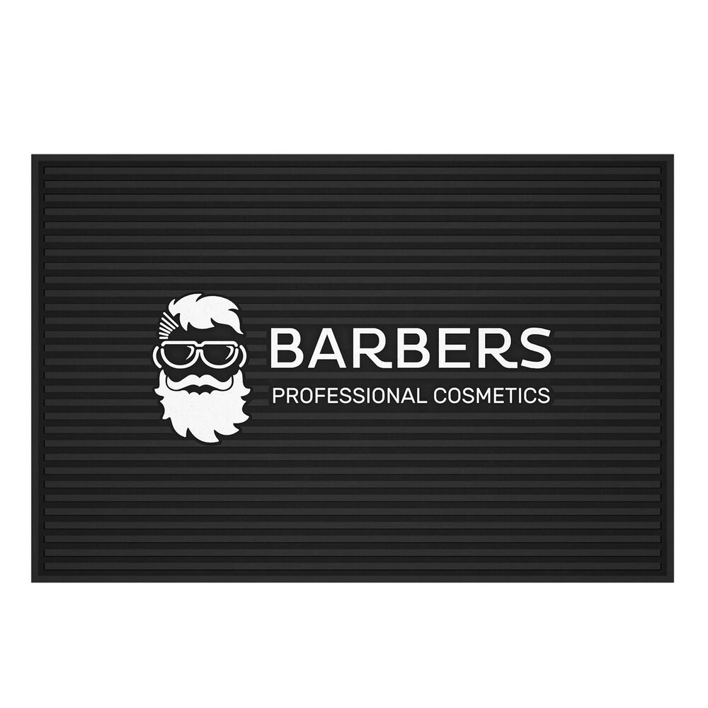 Професійний термостійкий килимок для перукарських інструментів Barbers силіконовий, 45х30 см чорний