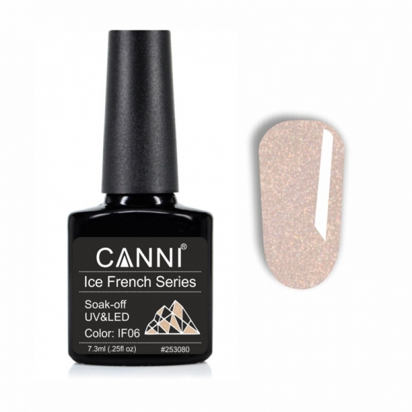 Купити Базове покриття Ice French base CANNI 06 напівпрозорий бежевий з голографічним блиском, 7,3 мл, ви зможете у нашому інтернет-магазині limonad з доставкою по всій Україні в тому числі і Київ, Дніпро, Одеса, Харків, Запоріжжя, Одеса, Львів та багато інших населених пунктів.