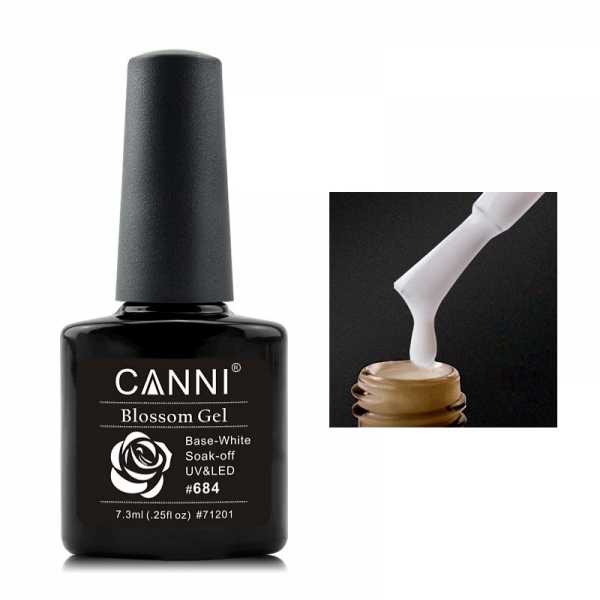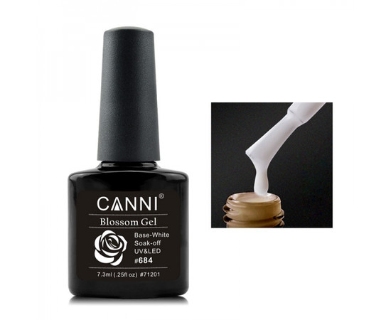 База під акварельний гель-лак CANNI Blossom Base №684 (біла) наноситься на підготовлений ніготь. База рівномірно покриває нігтьову пластину, не тече, не створює смуг або горбків. Дане «полотно» призначене для роботи в техніці «мокрою» акварелі. Акварельна база має середню консистенцію, відмінно підходить як для професіоналів, так і для новачків.