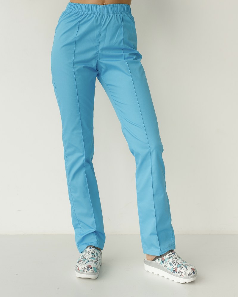 Жіночі штани медичні нашого виробництва будуть чудово поєднуватися з будь-яким верхом з асортименту «Білий Халат», будь то медична жіноча сорочка, поло або футболка, світшот або лонгслів.