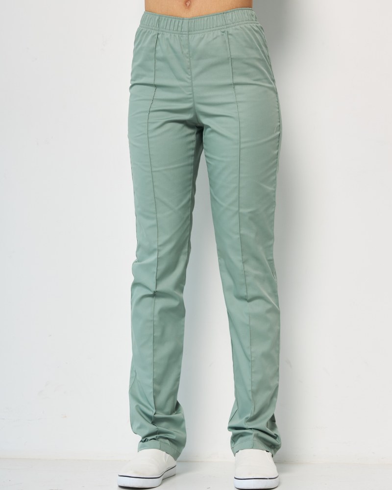 Штани медичні жіночі мають прямий фасон. На лицьовій стороні виробу розташовані декоративні рядки-стрілки, які додають робочому образу стриманості.
