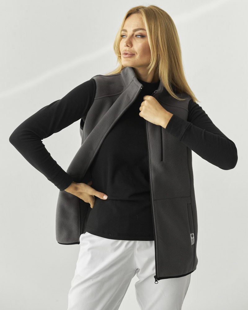 Медичний жилет флісова Канада — базовий елемент робочого гардеробу лікаря та спеціаліста індустрії краси в прохолодну пору року. Тепла жилетка з флісу дозволить почуватися комфортно і активно працювати в будь-яких температурних умовах. Медичний флісовий жилет Канада добре поєднується з медичними костюмами та комбінезонними, медичними халатами та туніками, світшотами та лонгслівами, брюками та джоггерами з асортименту інтернет магазину медичного одягу Білий Халат.