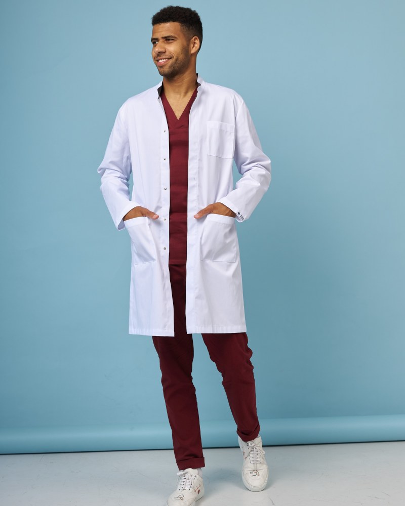 Чоловічий халат “Амстердам” — чудовий приклад того, що медичний одяг може бути як стильним, так і комфортним.