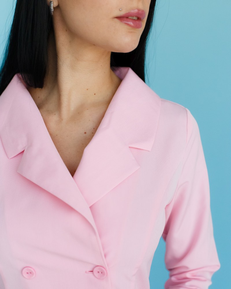 Елегантний медичний халат піджачного фасону. Лаконічна довжина, два ряди брендованих гудзиків і відкладний класичний комір (англійський) роблять такий халат ідеальною уніформою не тільки для лікарів-практиків, а й б'юті-майстрів, викладачів медичних закладів.
