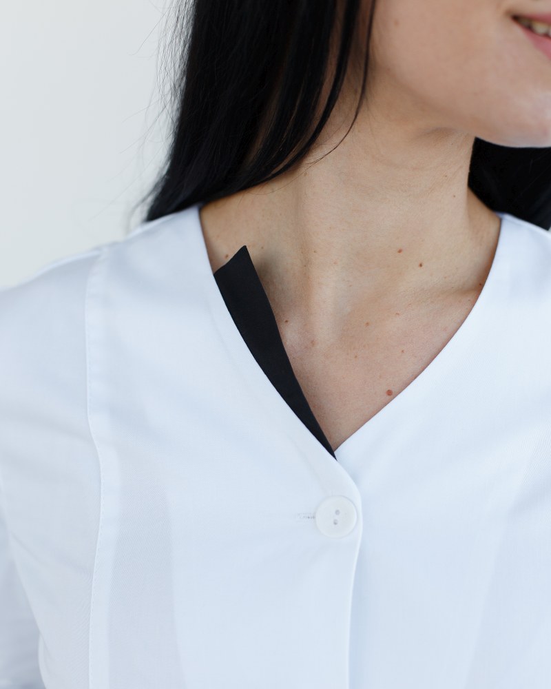 Медичний жіночий халат Олівія на гудзиках білий-чорний р. 40, "БІЛИЙ ХАЛАТ" 159-347-677
