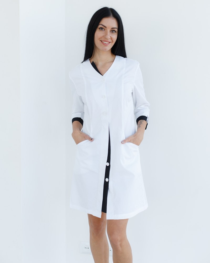 Медичний жіночий халат Олівія на гудзиках білий-чорний р. 54, "БІЛИЙ ХАЛАТ" 159-347-677