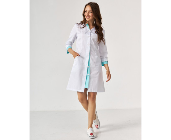 Медичний жіночий халат Олівія на гудзиках білий-ментол р. 40, "БІЛИЙ ХАЛАТ" 159-464-677